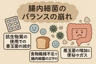 • 抗生物質の使用(善玉菌が減る)