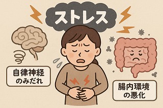 ストレスが続くと 自律神経が乱れ、腸内環境が悪化 します。